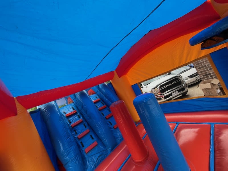 This dual lane combo has a tall Slide platform which will give you a steeper and faster slide coming down the lanes.