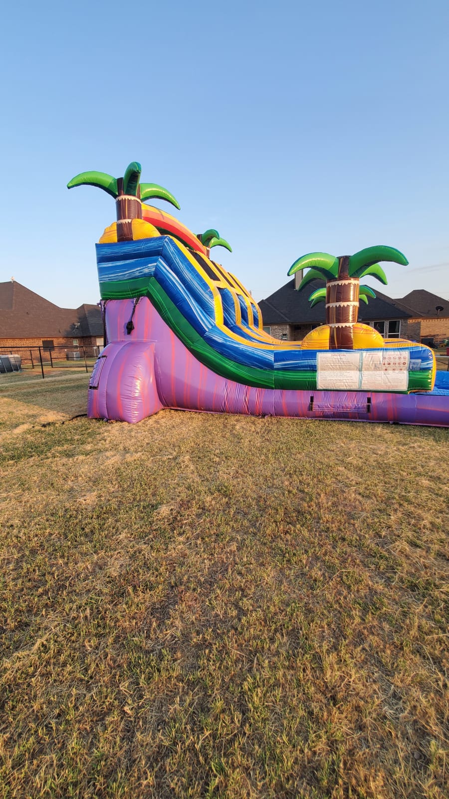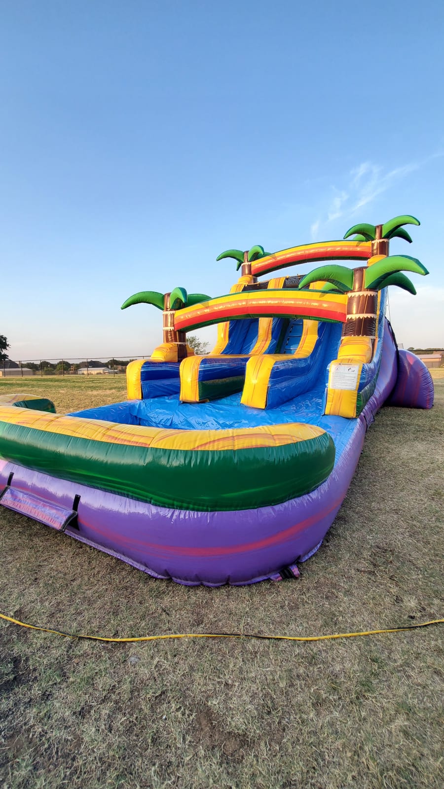 Sprinkler is attached to slide and will need a water hose to be connected to.