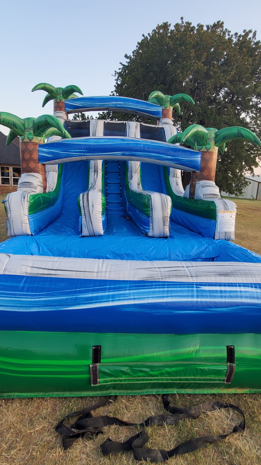 2 people at a time can slide down this fun water slide.