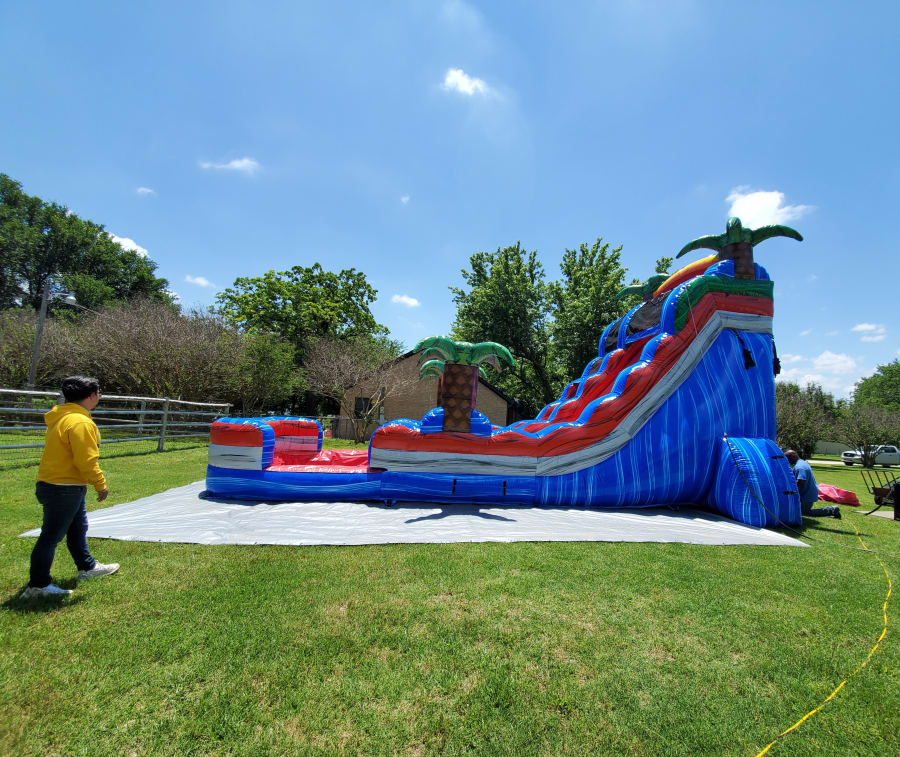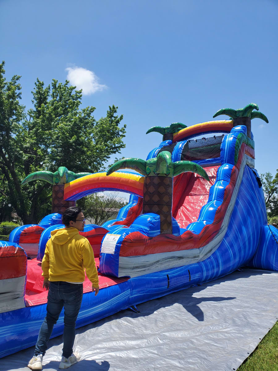 This is a tall slide that is mostly rented for teens, Adults or simply brave patriots!