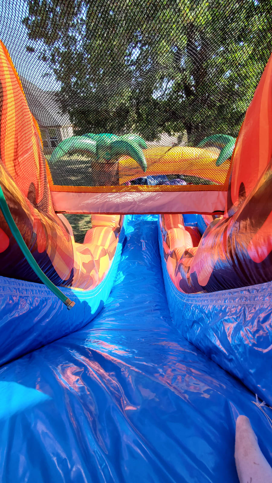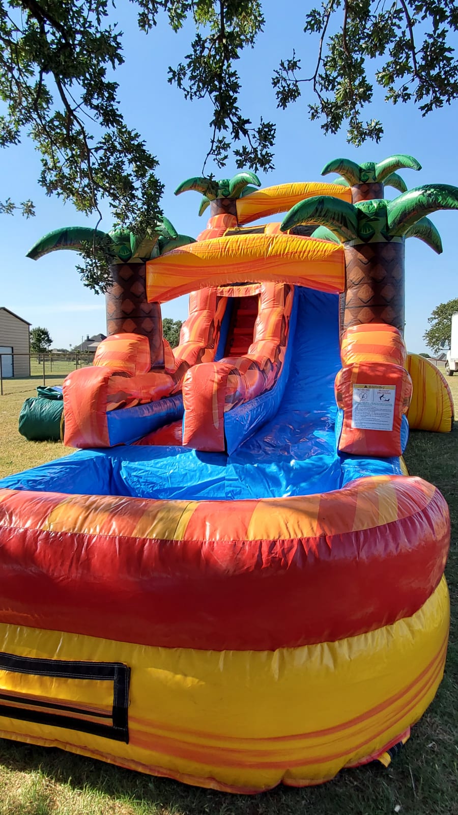 Sprinkler is attached to slide and will need a water hose to be connected to.